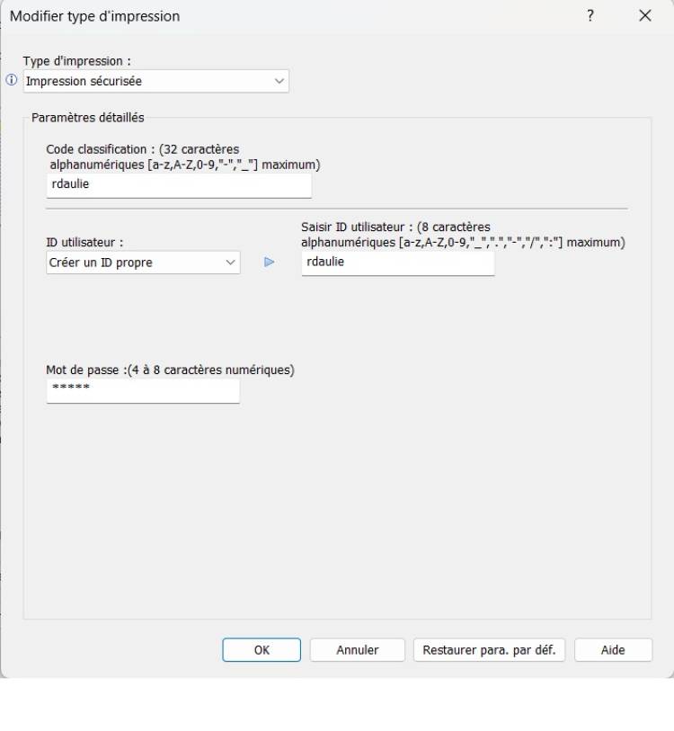 <note importante> Conseil : Ici merci de choisir l'impression en noir et blanc par défaut.</note>